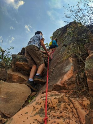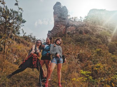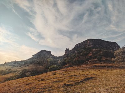 Camping na Serra Cuestas de Botucatu, subida a Três Pedras, caminhada ao poço e mirante da Pedra do Índio.