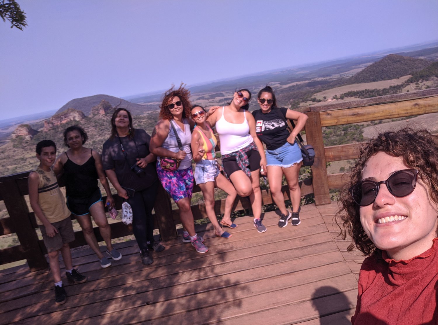 Acordamos e antes de tomar aquele café reforçado, só pegamos algumas frutas e decidimos ver quem ia subir/fazer a trilha das Três Pedras. Foi então que Eu, Rozy, Tati, Valéria e Gustavos preparamos a mochila de ataque com snacks e água, fazemos aquela pausa no banheiro e seguimos pelo início da trilha.
