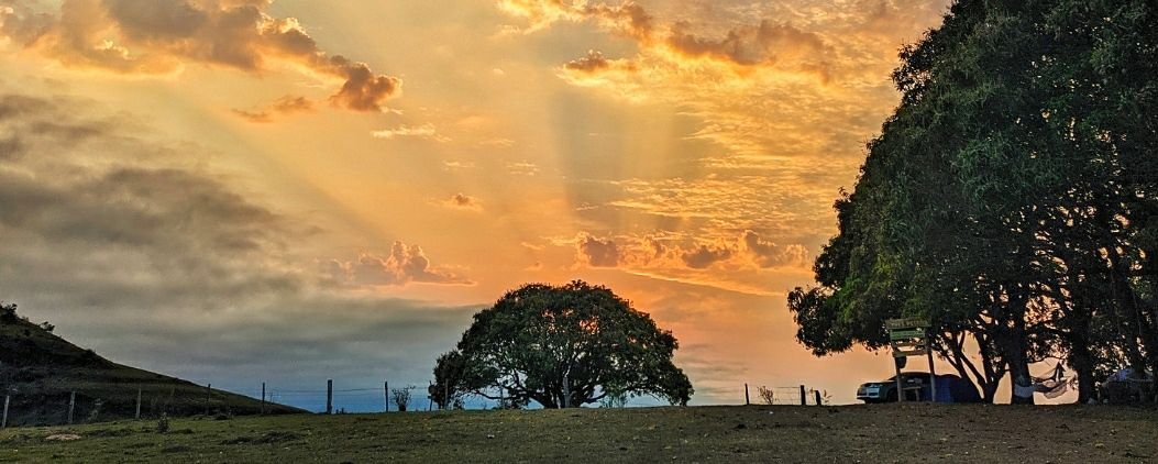 Voltamos pra nossas barracas, já estava findando o dia e podemos contemplar o pôr do sol no vasto campo da serra Cuesta.