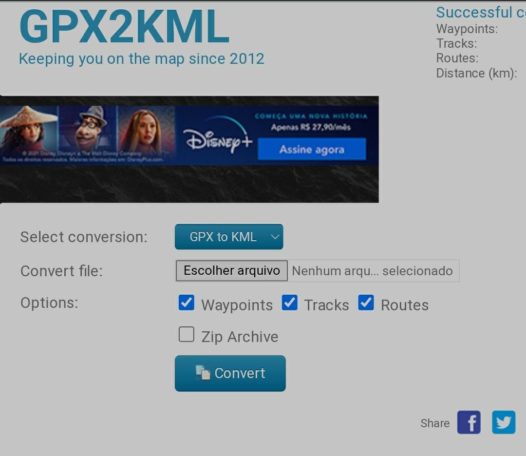 Quando quero então converter um arquivo de trilha de KML, que por exemplo é a extensão padrão do Google Earth para GPX que é a extensão do Garmin.
