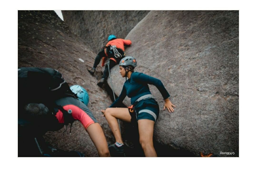 Escalada Hiking MontanhismoEra minha segunda vez fazendo a ascensão pela via da face Norte, era um rolê para as meninas assim dizia o Célio e dessa vez eu estava na missão de ajudar minhas amigas Pri e Angela a terem essa experiência.