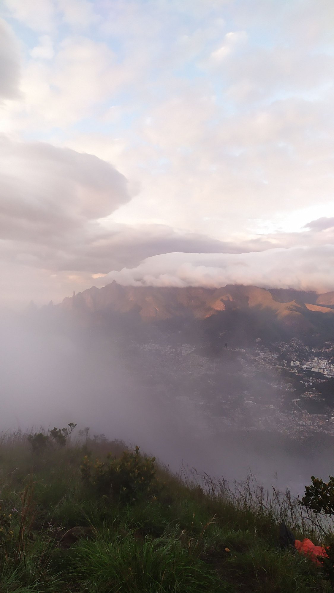 Ufa, agora eu entendo o que vc quis dizer com "inferno verde". Nunca peguei uma trilha tão fechada, com vários bambuzais caídos, e que nos obrigavam a rastejar. Além disso, 1,5km de capim-navalha nos cortando o tempo inteiro. Saí de lá parecendo ter brigado com um gato. Até minha orelha está cortada!!! Kkkk. Infelizmente para mim, o visual estava muito encoberto e eu acabei descendo. Sorte, porque choveu logo depois...