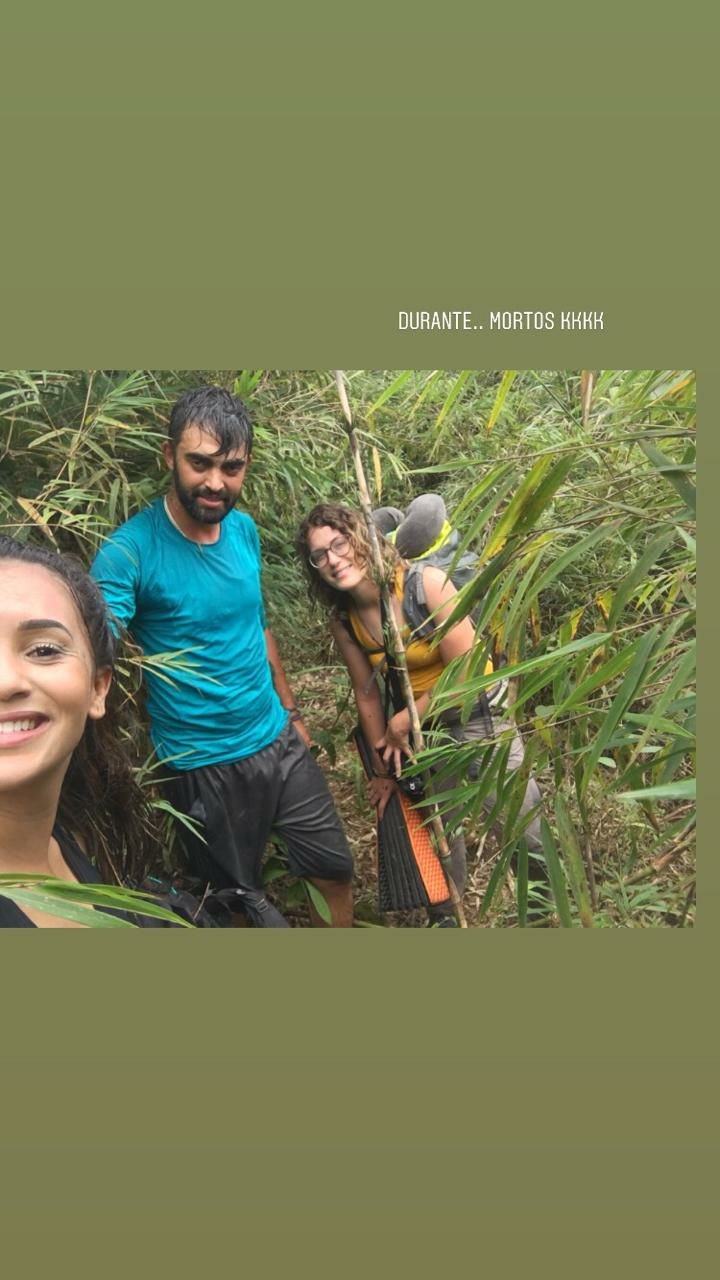 Trilha bem fechada e úmida, houve muitos momentos que tivemos que andar agachados pelos trechos e muito vara Mato, mas logo tivemos a vista maravilhosa do lado dos Três Picos.