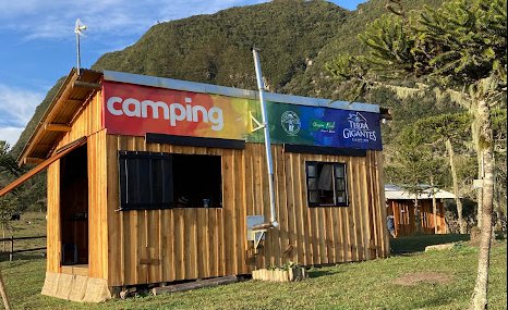 Para reconhecer o camping, primeiro veja ao redor fica exatamento após o lado. Essa identificação por banner é da empresa Green.Foot - onde o Augusto tem sociedade.