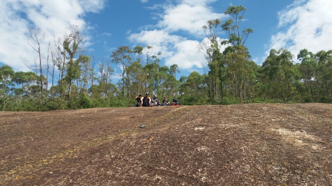 Chegamos a Pedra Grande e com bela vista, fizemos um lanche bem reforçado para seguir com a travessia que daquele ponto não estava nem na metade. Esperamos pela nossa companheira Agatha e Priscila que estavam fechando a trilha, nosso ritmo tinha ser mais apertado dali em diante e com nuvens CB (cumulonimbus) em cima de nós.