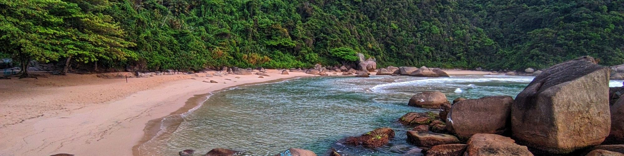 Embora o tempo estivesse nublado e depois veio a chuva aguardada da previsão, a praia do Cairuçu permanece linda.