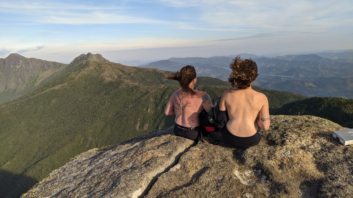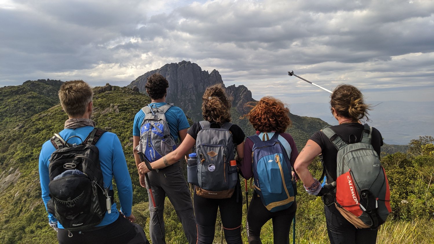Nessa parte já estávamos sentindo a força do vento, e houve mais um click de foto antes de partir pro cume. E digo aqui para vocês, foi o único momento da travessia que tivemos sol hahaha, foi no Itaguaré.