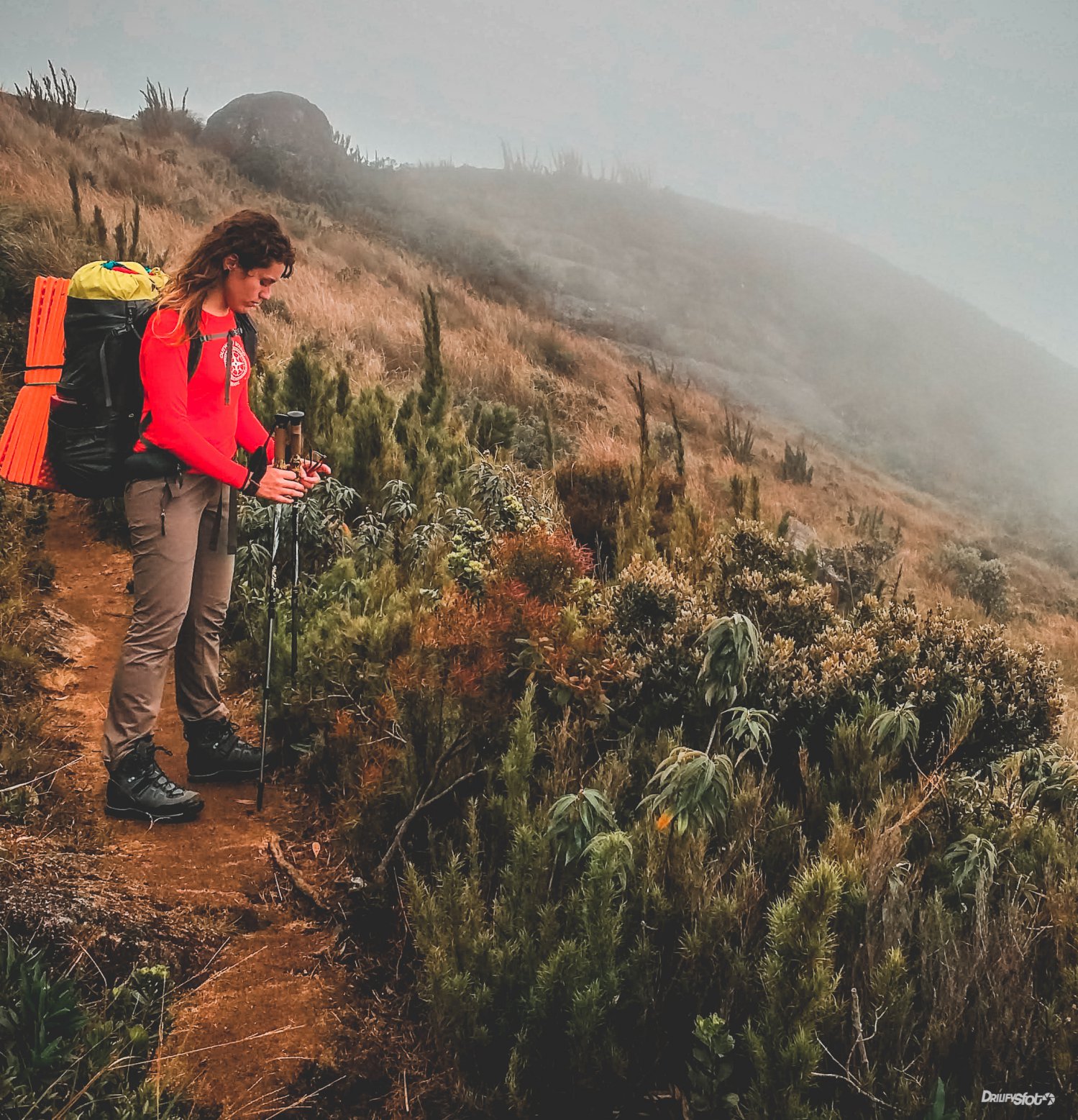 Tomamos o nosso café da manhã no Portais e era hora de subir e voltar pra Petrô, mas o Jorge nos deu uma ideia maravilhosa ahah, porque não descer pra Teresópolis? Bom eu fiquei pensando na hora, já era 7h30 e se daria tempo né, afinal eu tinha tomado um remédio pra dor no joelho na noite anterior e o Samuel esbarrou as costas e um toco de árvore ali mesmo na trilha e estava com desconforto, mas ele conseguiu esses dois dias de folga e eu não tinha conhecido nada do visual da Travessia , porque dois anos atrás eu a fiz debaixo do chuva e serração; olhamos no track e realmente era um trajeto de pouca km até o Sino, o problema era aquela descida em zigui-zag até a Barragem de quase 9,7km, VAMOS foi isso que veio mente, mas sem paradas longas, olhamos nossa comida e celular estava tudo ok. Despedimos deles na subida até voltar para trilha do Morro da Luva. Agora era só nós dois de novo, o relógio marcou 8h20 quando entramos na trilha novamente.