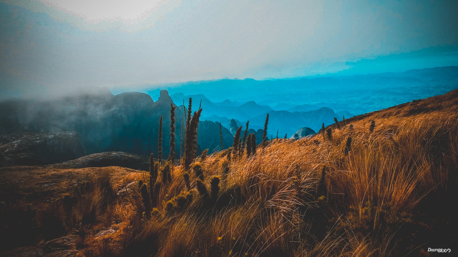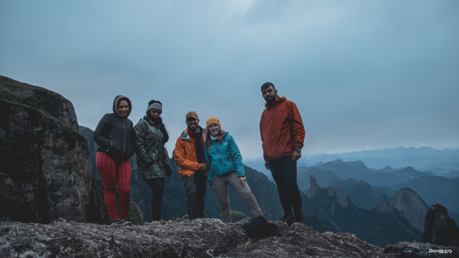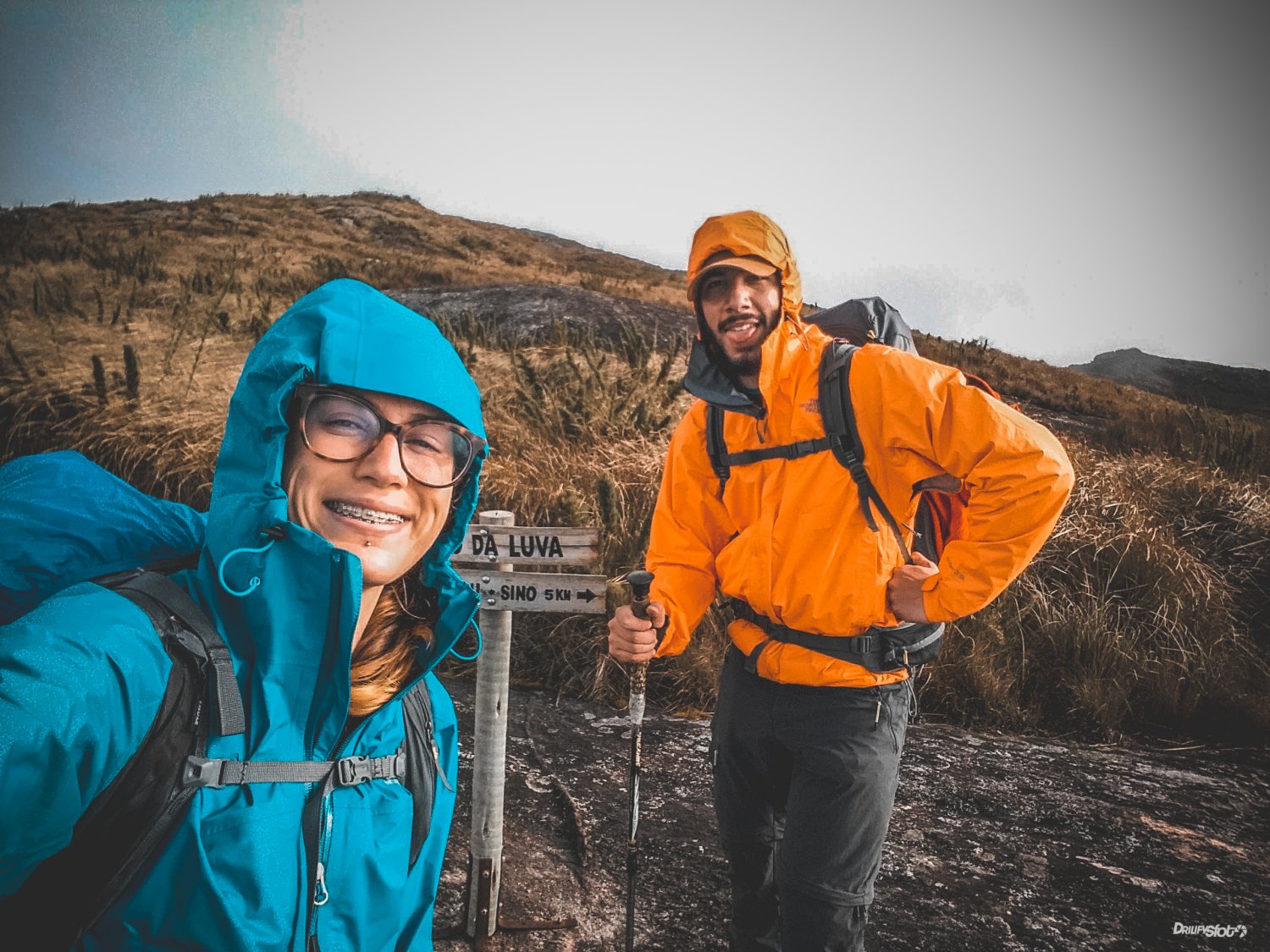 O céu estava estrelado, mas o crepúsculo da manhã não estava para aqueles dias que daria um belo por sol. Eu estava bem anciosa porque finalmente eu iria conhecer o famoso Portal de Hércules, só tinha nós cinco na trilha, quando o relógio bateu as 6horas vimos algumas lanternas acima de nós no Morro do Marco e algumas bem distante de nós no Sino. O sol já tinha saído era 6h10 estávamos no lindo visual dos Portais, mesmo as nuvens tampando os raios do sol, o local vence qualquer perpesctiva de tão lindo que é. Meu sonho estava realizado.