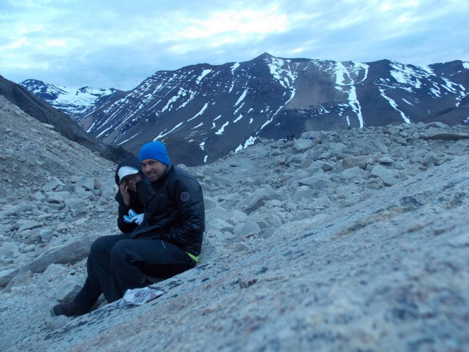 A noite foi fria, muito fria, mas muito fria. Acordamos cedo como de costume e quando saí da barraca ainda estava escuro e congelante, mas o nascer do sol, nos presenteou mais uma vez com outro espetáculo.