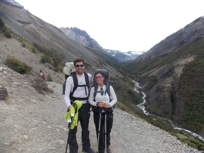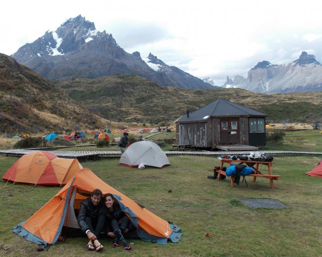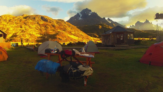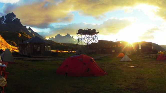 Bem, chegamos ao Campamento Los Cuernos ao fim do dia. Dificil foi arrumar um lugar pra barraca, a área estava cheia, mas a Maria conseguiu um lugar. Exaustos comemos e tomamos o banho melhor de nossas vidas. No outro dia, a rotina continuava. Arrumamos as coisas, a barraca mesmo molhada foi pra mochila e começamos mais um dia, uma pernada razoável até o Campamento Britanico, a meta era dormir por lá e subir o Vale do Frances no outro dia.