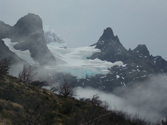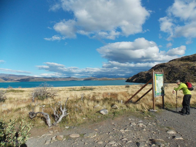 Chegamos na área de acampamento e conversando com o guarda parque, ficamos sabendo que não tinha visibilidade nenhuma no vale, a subida ia ser em vão, as nuvens que chegaram não iria embora tão cedo. Decidimos então que continuaríamos em direção ao próximo acampamento - Campamento Paine Grande. Foi o que fizemos.