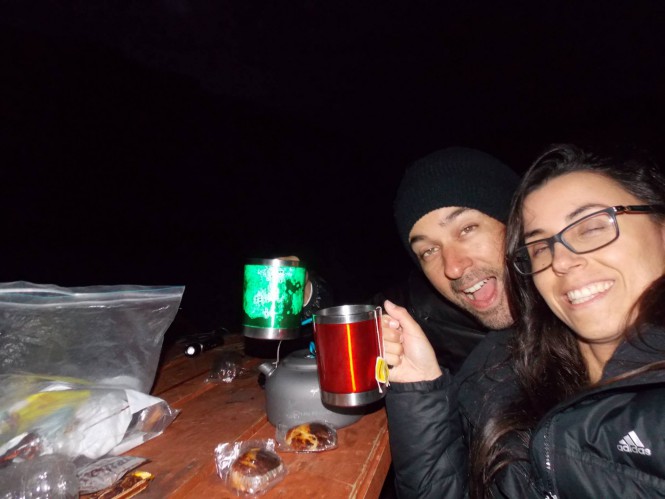 A noite foi fria, muito fria, mas muito fria. Acordamos cedo como de costume e quando saí da barraca ainda estava escuro e congelante, mas o nascer do sol, nos presenteou mais uma vez com outro espetáculo.