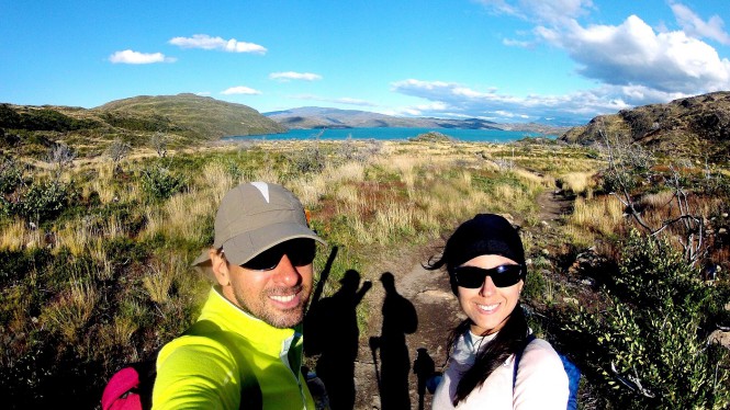 O visual do Lago Pehoé é absurdamente lindo, um lago imenso, azul, uma paz. Tiramos várias fotos, mas nenhuma mostra exatamente como é.
