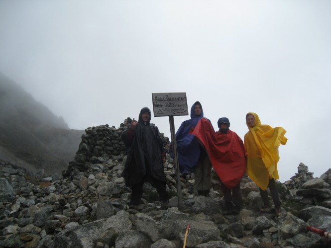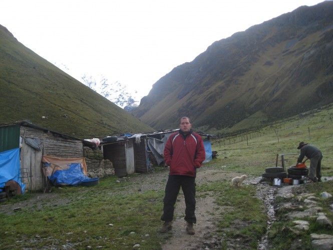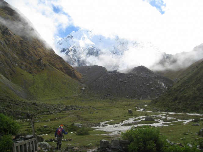 No dia 23/03 encontrei o grupo: três dinamarquesas e o guia peruano. Tomamos uma van em Cusco e seguimos até Mollepata, a cidade onde começa o trekking. Após uma breve parada para comprar bastões de caminhada, iniciamos a caminhada pela manhã por um terreno inclinado (pelo que me lembro parecia uma estrada de terra) mas bom. Andamos até um ponto onde se podia admirar a beleza das montanhas ao redor e ali almoçamos e descansamos. Já refeitos, caminhamos coisa de mais três horas e chegamos ao acampamento onde passaríamos a noite, em Soraypampa, a 3100 m. s. n. m. Ali eu tive o meu primeiro contato com o ambiente de alta montanha. Eu já demonstrava interesse pelo assunto, mas quando vi o nevado Salkantay, eu, que já andava pensando no assunto, tomei a decisão de, na próxima vez, tentar subir uma daquelas. Um passo ousado para quem havia começado a escalar indoor havia apenas um ano. Mas isso é conversa para outra hora, rs.