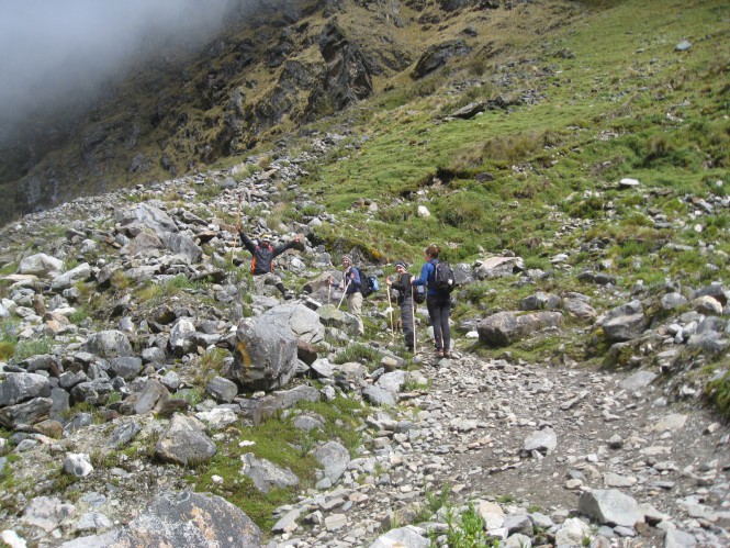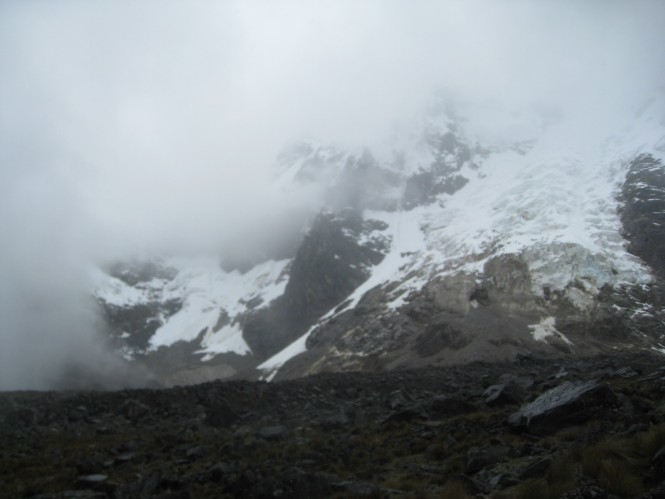 Acordamos para o que seria o dia mais longo do trekking: uma caminhada de aproximadamente 12 hs, onde subiríamos por 3 horas até atingir 4600 m. s. n. m. e depois descer até 2100 m. s. n. m., se não me engano. Iniciamos a caminhada cedo e começamos a subida até o Paso Salkantay. O grupo foi num ritmo muito bom, e chegamos em 3 horas. Dali a vista para o nevado é sensacional, na minha opinião o lugar onde mais se sente a energia das grandes montanhas. Iniciamos a descida e, enquanto descíamos, tive a sorte de ver uma avalanche nas encostas do Salkantay. O estrondo causado por uma avalanche é um som que não dá para esquecer. Simplesmente espetacular! Uma forma de a natureza mostrar quem está sempre no comando.