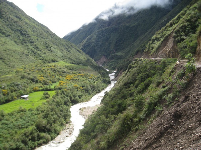 Quando acordamos tomamos o nosso café na vendinha e seguimos rumo Santa Teresa. Foram aproximadamente 6 horas de caminhada por uma estrada de terra que margeava um rio (infelizmente não lembro o nome do rio) e repleta de marcas de deslizamentos, onde chegaríamos a um restaurante e dali partiríamos em uma van para cobrir um trecho onde estavam ocorrendo muitos deslizamentos (prepara-se para isso quando for para lá em época de chuvas) por mais aproximadamente uma hora até o local onde ficariamos, uma área coberta de um hostel, em Santa Teresa. Ao chegar, armamos o nosso acampamento e ali havia chuveiros com água quente por 5 soles, que eu não hesitei em pagar. Após três dias sem banho, era o paraíso.