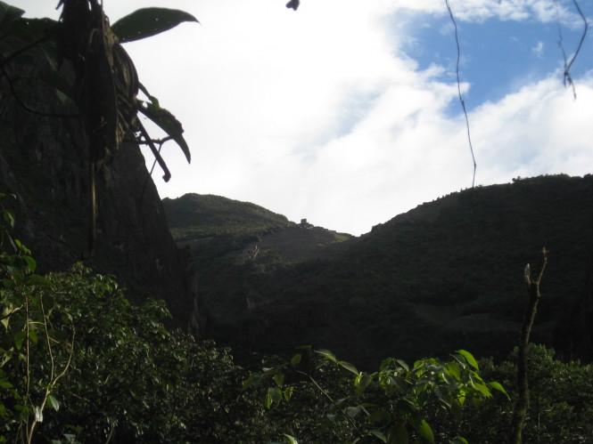 Chegando a Águas Calientes, o primeiro vislumbre do objetivo da travessia.