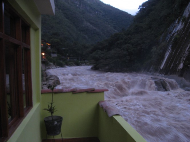 Rio Urubamba "tranquilinho" visto do quarto do hotel. Parecia que tinha um milhão de descargas ligadas.
