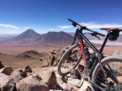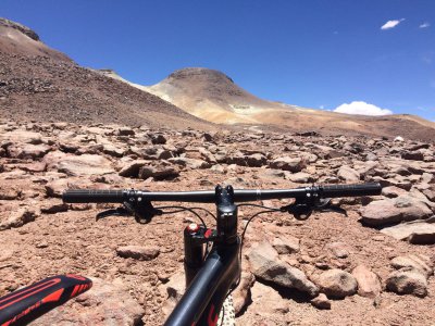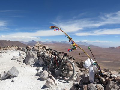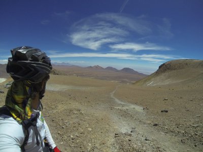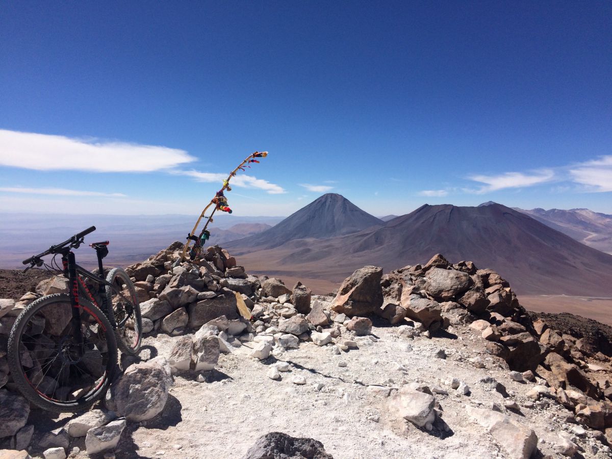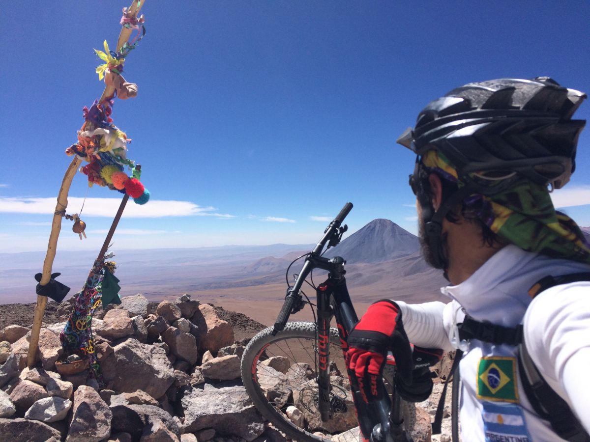 Partindo dos 2300m de altitude de San Pedro de Atacama e após dez horas e meia, 56 km em uma única subida conquisto um dos cumes dos Andes.