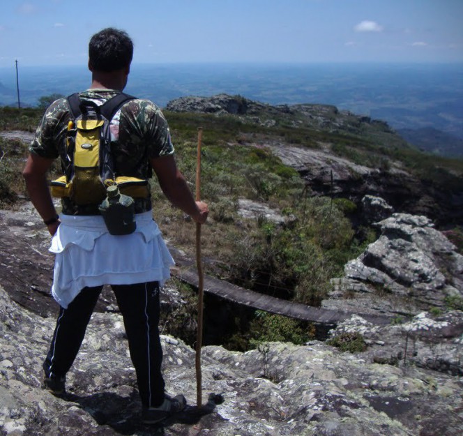 Aqui corre Água Santa"; entre as pedras do Espinhaço