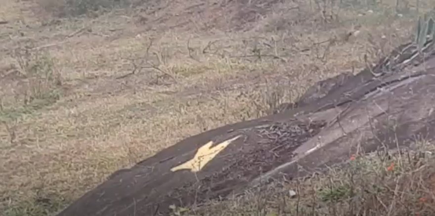 Durante a parte da manhã fiquei a base de barra proteica, gel e muita agua. Os primeiros kms são pelo asfalto, até entrar numa trilha de terra que passa por diversas fazendas. Algo que me incomodou, principalmente nos dois primeiros dias foram os cachorros que corriam em minha direção sempre que me aproximava das propriedades, mas não houve ataque apenas o susto. Após alguns kms e horas caminhando na trilha de terra, uma seta amarela onde indica para onde o peregrino tem que seguir me direcionava para o alto de uma pedra mas com um caminho praticamente tomado por mato alto o que dificultou encontrar a trilha, o que salvou foi uma seta amarela no alto de uma montanha.