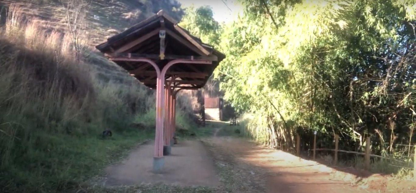3o. dia 17/07, acordei as 5h30 e arumei minha mochila, seguindo a rotina que sempre adoto nas caminhadas. Vaselina, salompas, esparadrapos, separei gel, enchi duas garrafas e desci para o café da manha pouco mais de 6h (apesar de que indicavam que o café seria servido as 6h30). Guardei duas bananas e uma maçã para consumir ao longo do dia. São alguns kms ao longo da cidade, até chegar na árvore mãe, trecho para quem sai de Faria Lemos em direção a Carangola, dali são alguns kms por uma trilha de terra até começar uma longa subida até chegar a uma estação / parada de trem desativada.