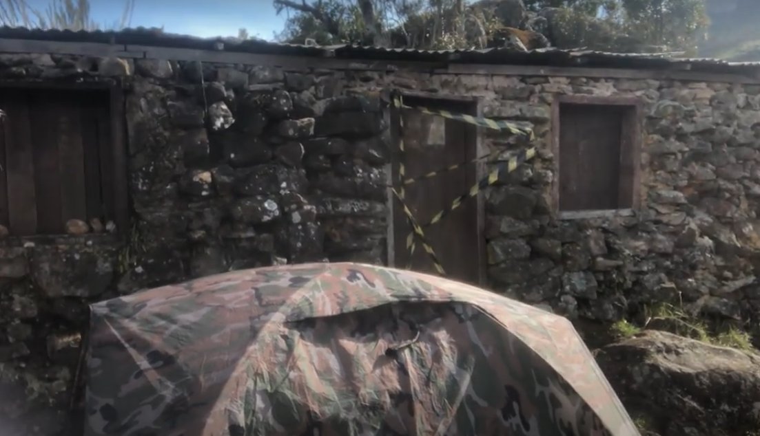 Um pouco antes das 9h iniciei a subida, estava sem a mochila (o que me ajudou bastante) uma garrafa de água, um corta vento, um gorro, 2 sachês de gel e um par de bastões. São 4km andando por uma trilha muito bem indicada por estacas em amarelo até chegar ao Terrerão, onde é possível acampar e passar a noite. Até o Terrerão, poucos trechos tem conexão de celular e num determinado momento tem um trecho para abastecer de água. O Terrerão tem apoio com guias para quem quiser acompanhamento ao pico, banheiro e a casa de pedra, local onde na época da Ditadura a guerrilha se encontrava para reuniões.
