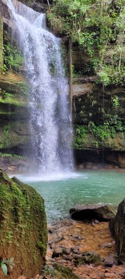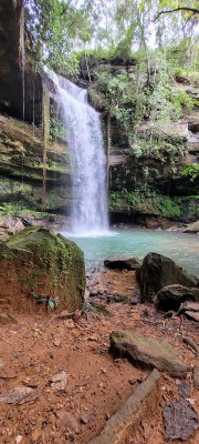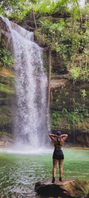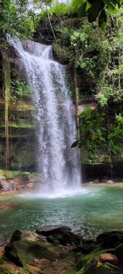Uma das cachoeiras mais bonitas que já vi, com aproximadamente 30 metros de queda. Tive a sorte de contemplá-la com grande volume em jan/23.