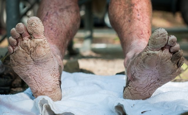 A expressão do atleta que consegue completar uma das cinco voltas do circuito da Barkley Marathon é de total desolação com tamanho sofrimento.