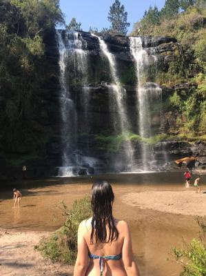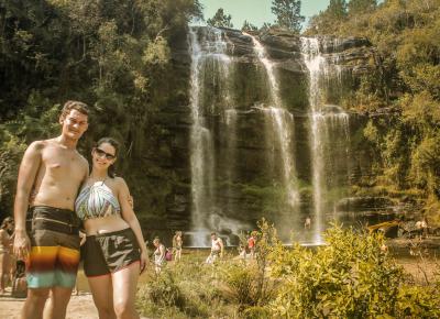 Visita à Cachoeira da Mariquinha em Ponta Grossa com trilha até o topo da cachoeira.