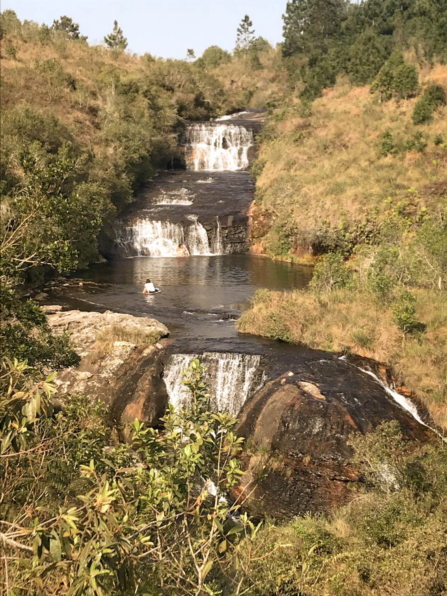 Caminhando mais alguns metros na trilha cachoeira acima, encontramos uma sequência de outras 3 cachoeiras muito bonitas. Como já estava ficando tarde e sabíamos que teríamos uma decida difícil pela frente, optamos por voltar. Mas ficamos com vontade de voltar para aproveitar mais essas cachoeiras que, por sinal, estavam mais vazias.