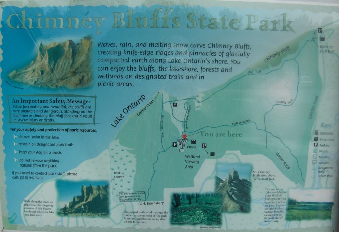 HikingThe Chimney Bluffs State Park, is located in Wayne County – NY, in the northern Finger Lakes region. At the water’s edge, the clay formations give a beautiful natural formation alongside Lake Ontario shore.