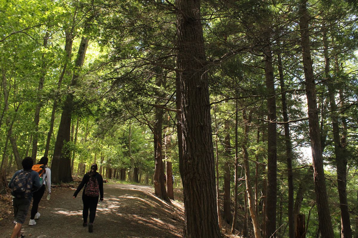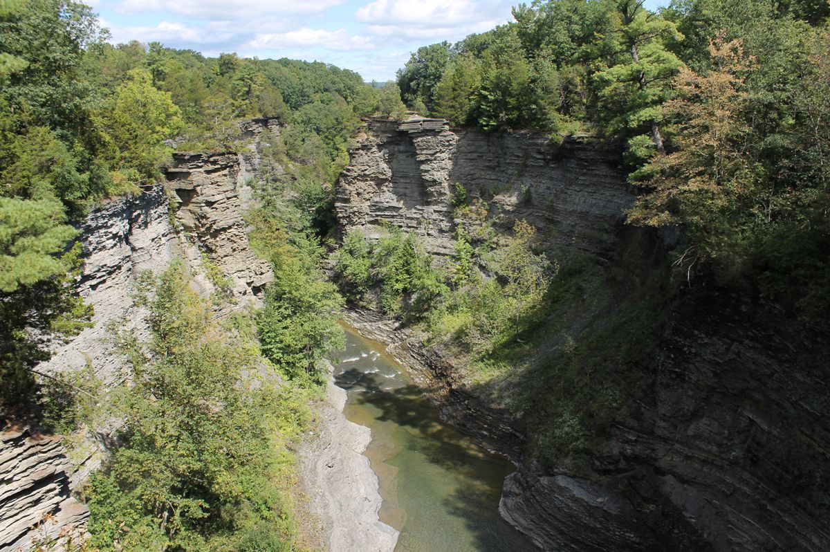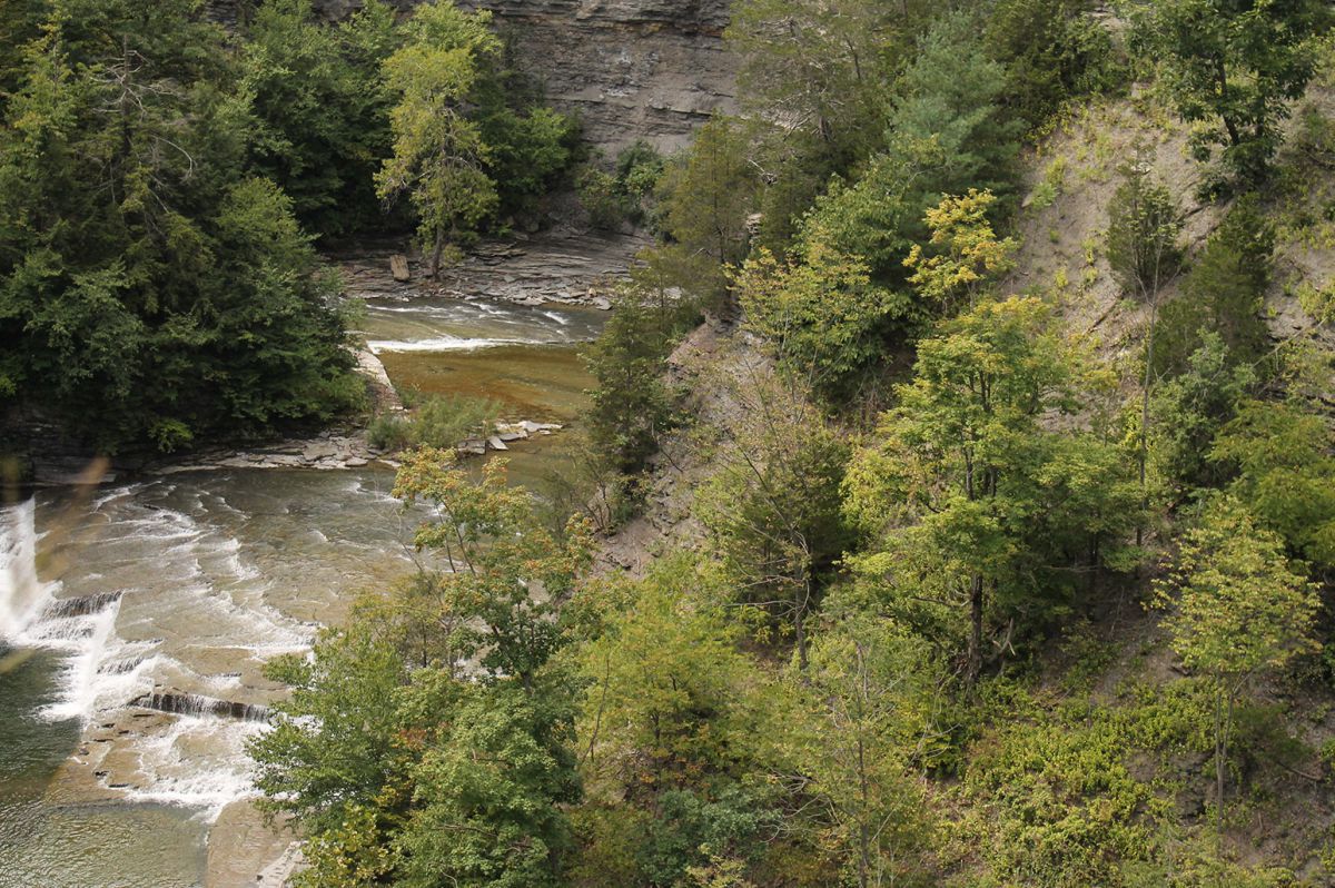 Hiking leading to an incredible waterfall in Taughannock Falls State Park