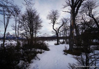 Trilha de 9km (ida e volta) para a Laguna Esmeralda, um dos mais belos cenários de Ushuaia, na Argentina.