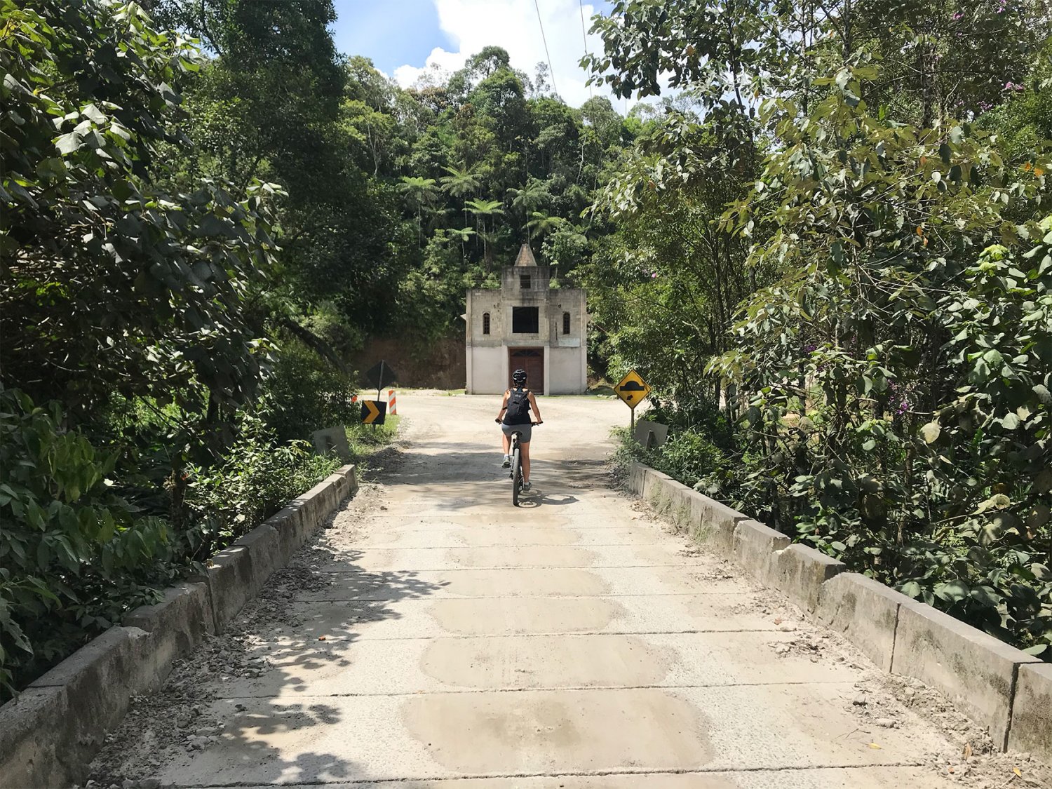Depois de passarmos por uma igreja, que fica bem no meio de uma bifurcação, começaram mais subidas, e com pedras mais soltas. Mas nada impossível, até mesmo para iniciantes como eu. Quanto mais andávamos menores iam ficando as estradas, mais fazendas, pequenos sítios iam aparecendo.