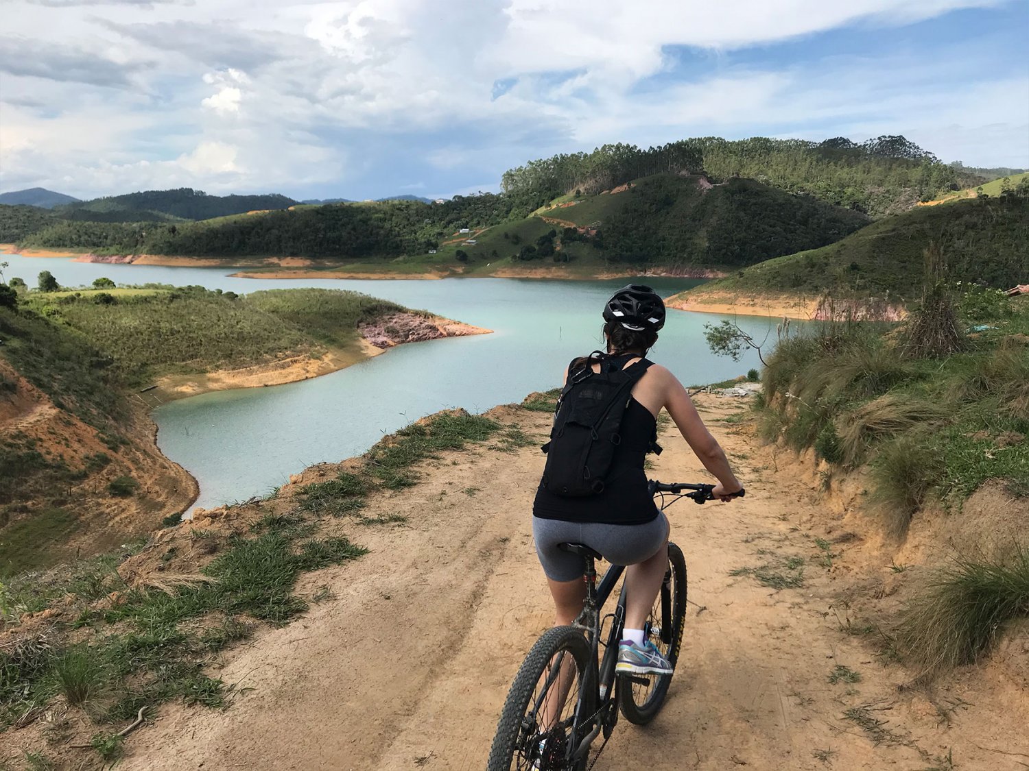 Aos poucos começamos a ver a represa. Realmente, uma vista muito bonita e recompensadora. Pedalamos mais um pouco, seguindo a represa, e em seguida paramos para comer uma fruta e beber uma água. Demos meia volta e começamos o retorno.