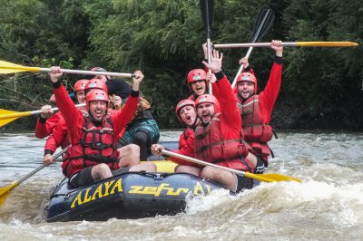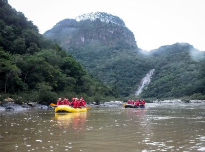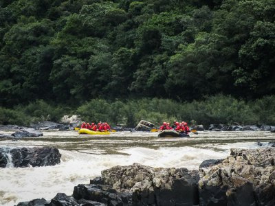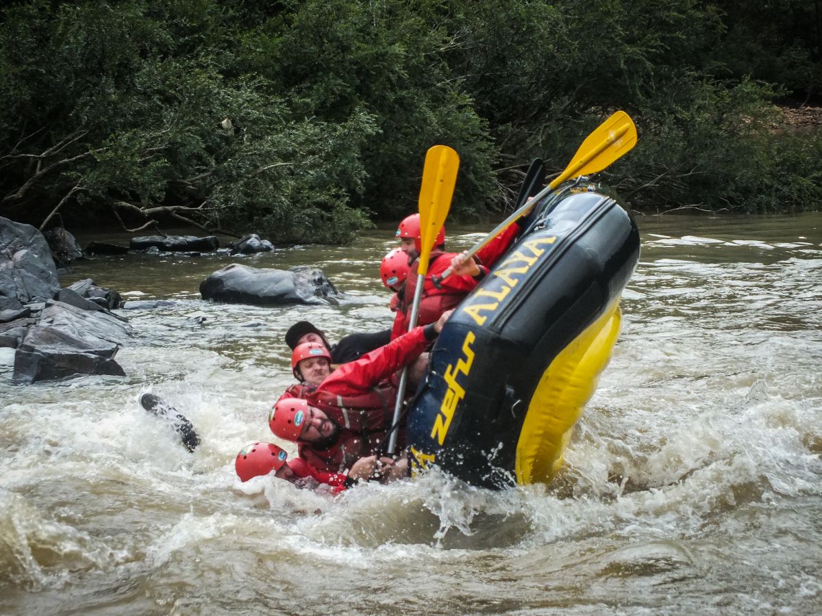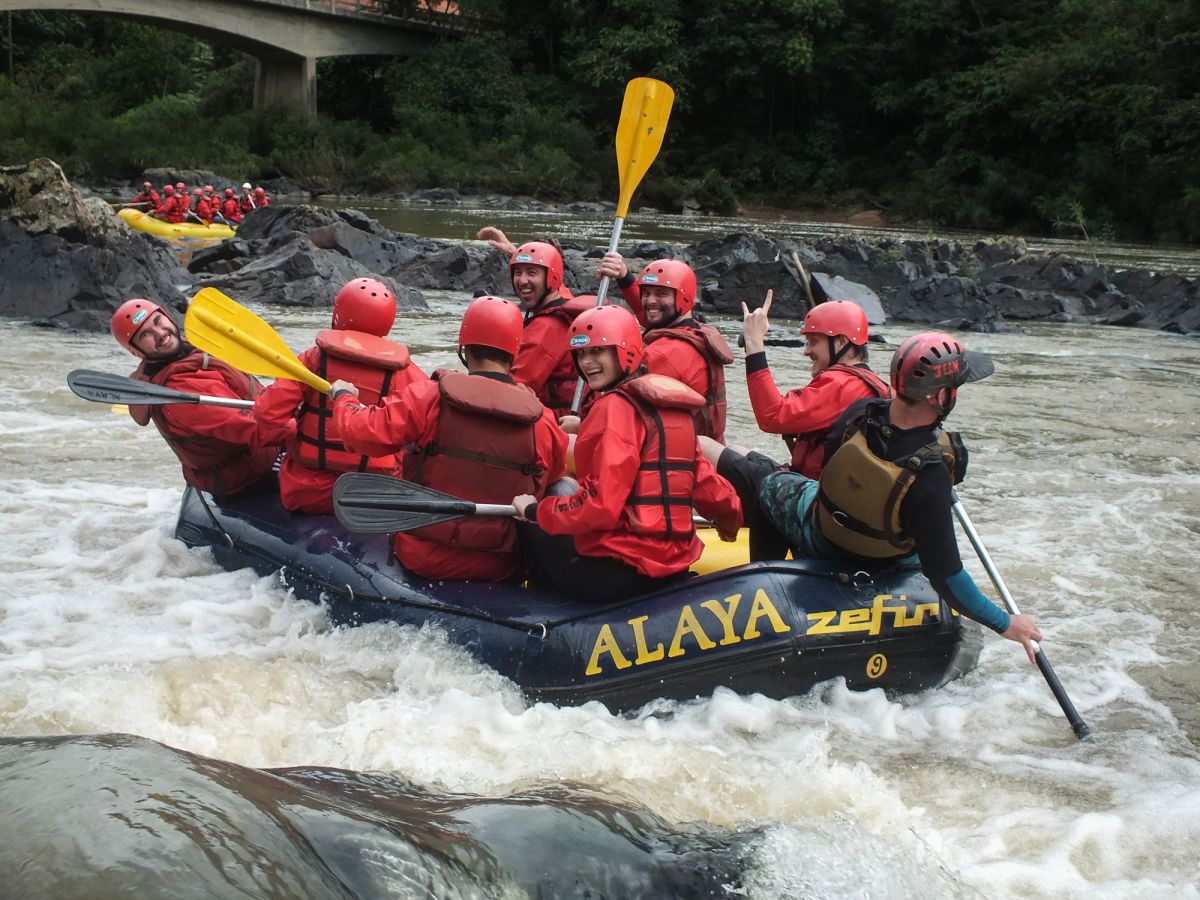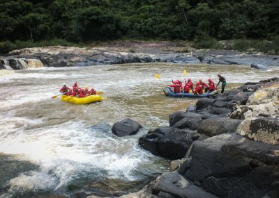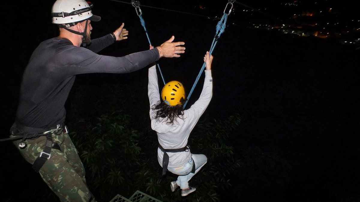 Rafting no Rio Itajaí Açú seguido de tirolesa de 1km durante a noite.