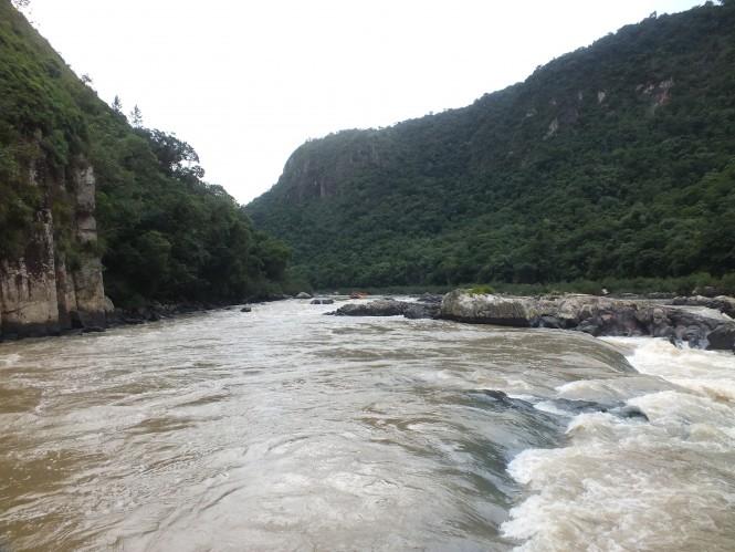 O cenário é lindo. O rio Itajaí Açú é costeado por montanhas dos dois lados. Há ilhas de pedras que o cortam e uma cachoeira que deságua nele. Mesmo não sendo a primeira vez que eu faço rafting, essa experiência ficará gravada na minha memória principalmente pelo cenário lindo em que acontece. Foi uma experiência ótima, misturando a intensidade das corredeiras com a paz que a natureza do lugar trouxe.