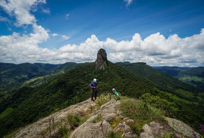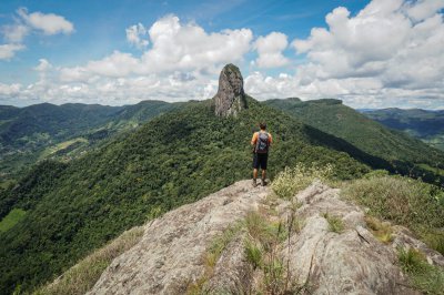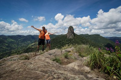 Hiking saindo do estacionamento do Bauzinho até o cume da montanha Ana Chata próximo a Pedra do Baú, em São Bento do Sapucaí, São Paulo.