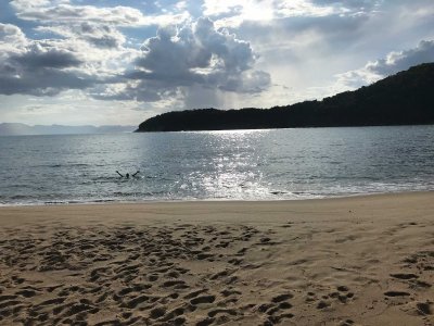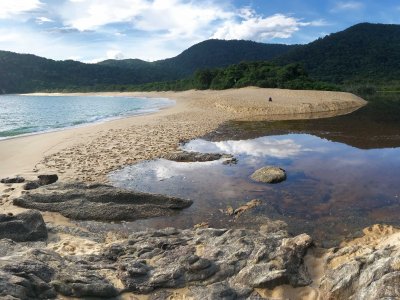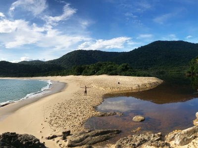 Hahaha cara, seguindo mais uma trilha no final da praia chega em uma outra chamada Simão! Lá tem uma área de camping muito massa! Parte da travessia do “Saco da Banana”! Vale a pena conhecer a travessia! 🤘🏼