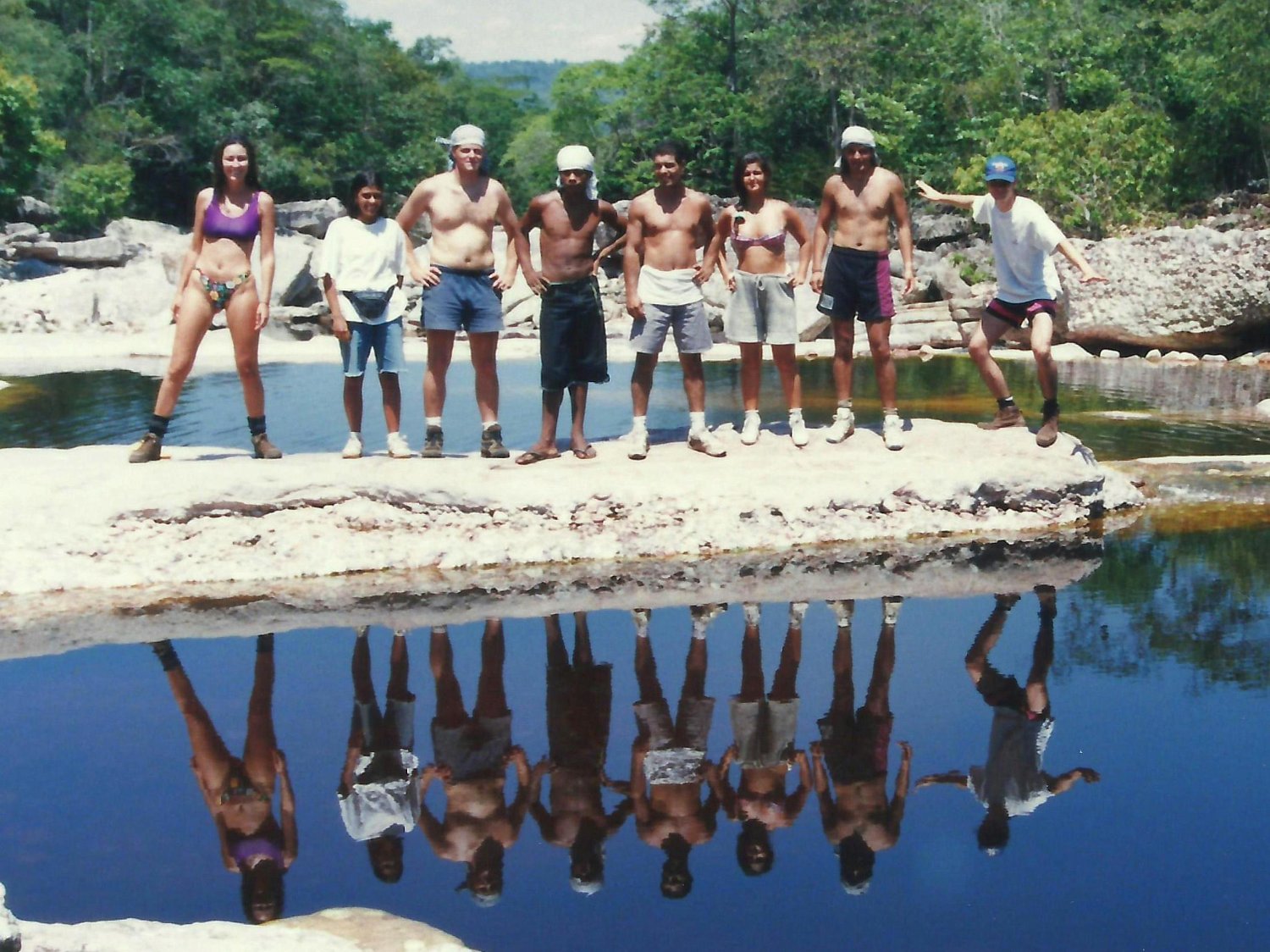 No dia seguinte fomos todos juntos conhecer a cachoeira do Sossego, diversas piscinas naturais ao longo do ribeirão do Meio e o Tobogã, formado por uma extensa laje de pedra onde era possível escorregar até um grande poço. Foi assim que teve início a turma formada por mim, Gina, Gustavo, Alexandre, Beto, Josué, Luli e Alessandra, que permaneceria unida por quase toda a viagem pela Bahia.