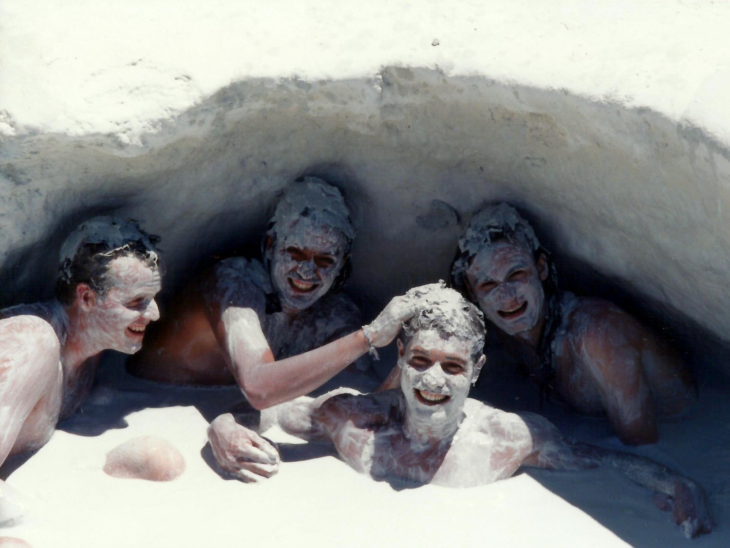 Disseram que era areia medicinal. Pela cara do grupo, mal não fez.