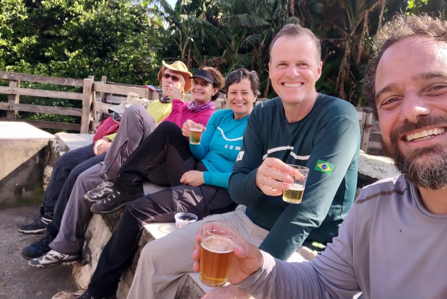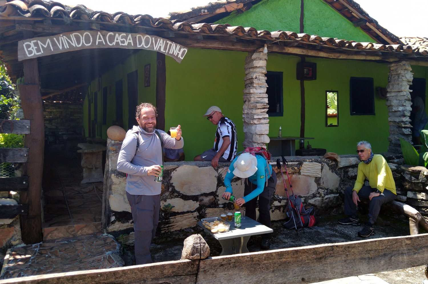 O jeito foi seguir até a casa do Valtinho, referência local, onde não resistimos à tentação de tomar algumas cervejas geladas, acompanhadas de pão de queijo, antes de prosseguir com a caminhada. E não podemos negar que foi providencial, diante do calor e do Sol forte naquela bela manhã de domingo!