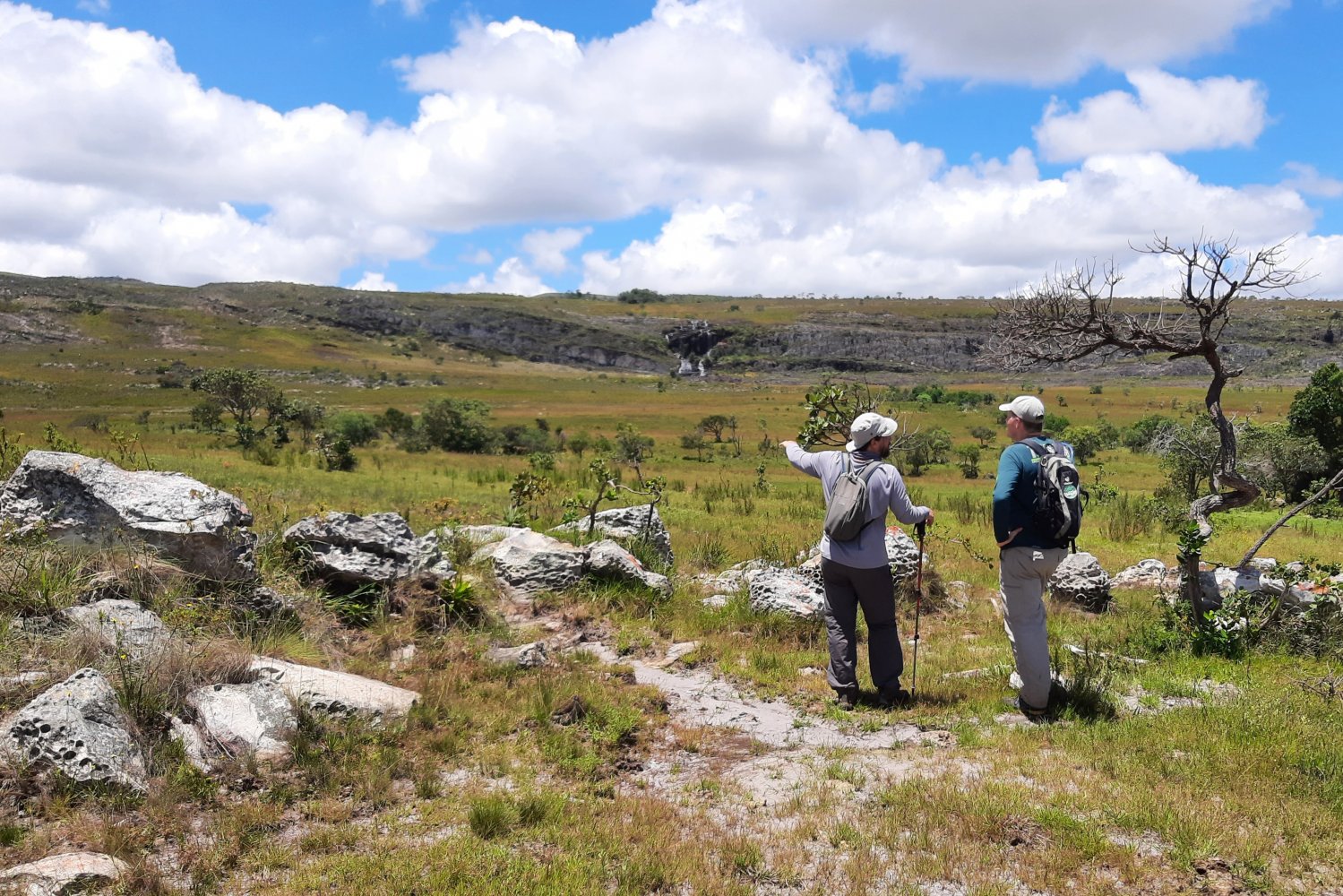 Curados da insolação e mais conscientes das possibilidades para aquele dia, decidimos caminhar até a cachoeira da Vaca Morta, no meio da trilha que segue para o povoado de Cemitério do Peixe. O caminho passa por áreas de cerrado e campos rupestres já bastante alterados pelo gado e pelo fogo, mas que ainda guardam a beleza única das paisagens nos altos da Cadeia do Espinhaço.