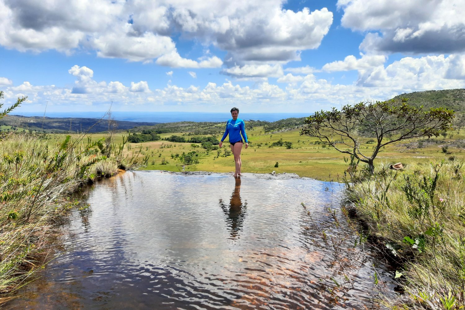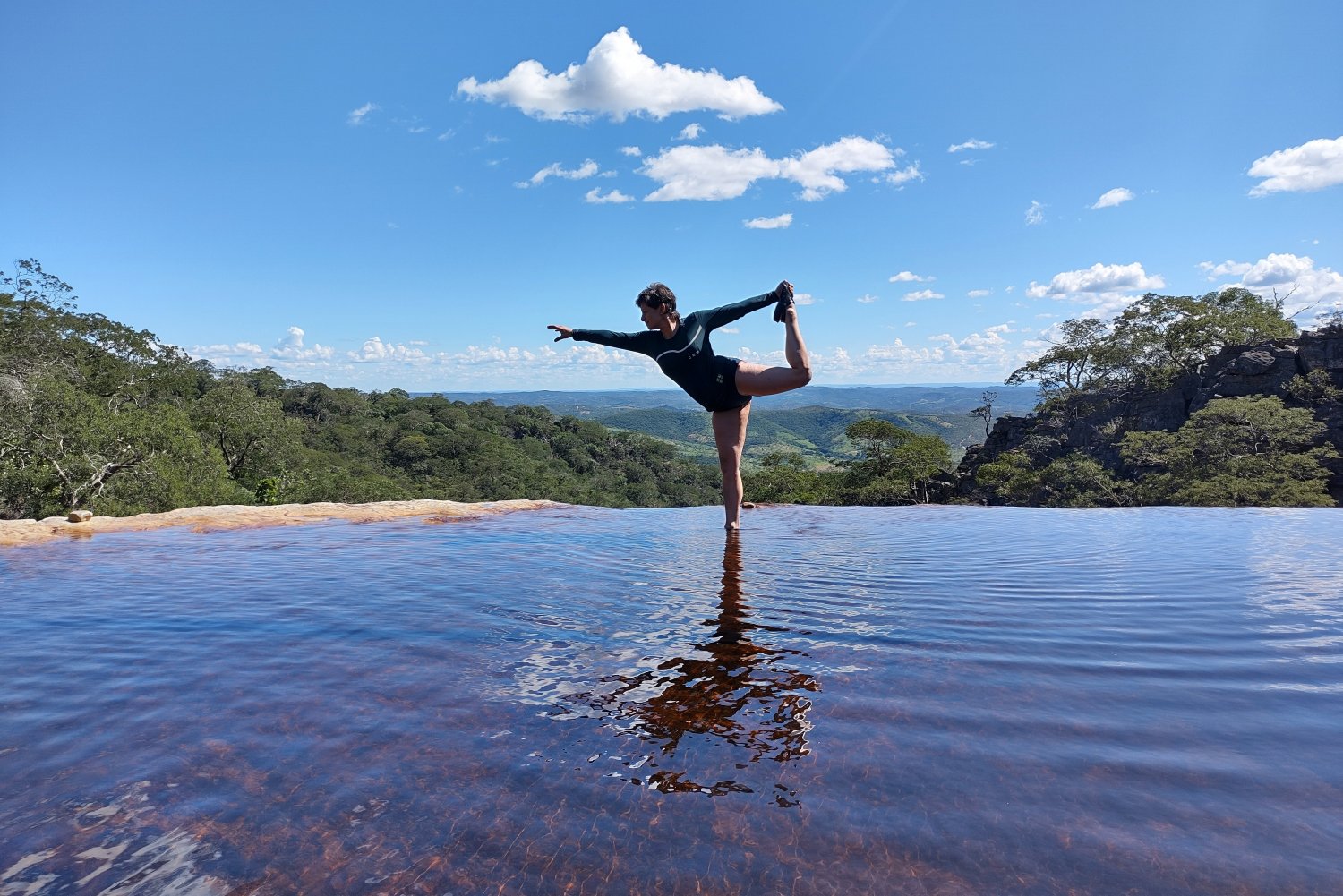 Já no alto da cachoeira, um belo poço com borda infinita.