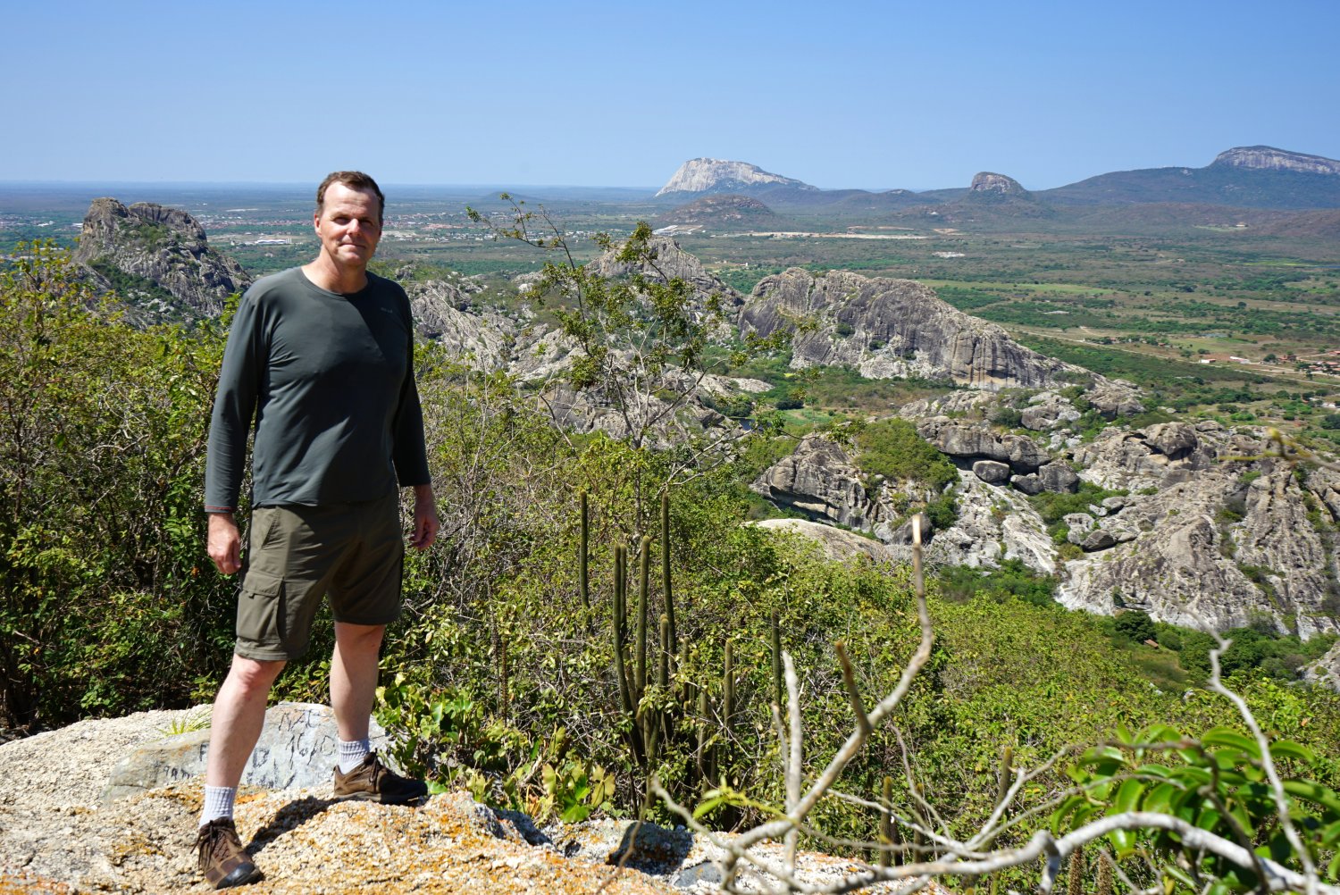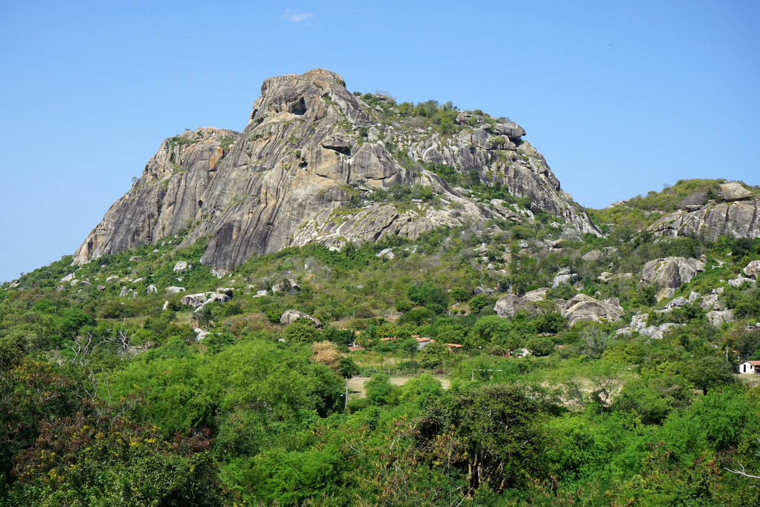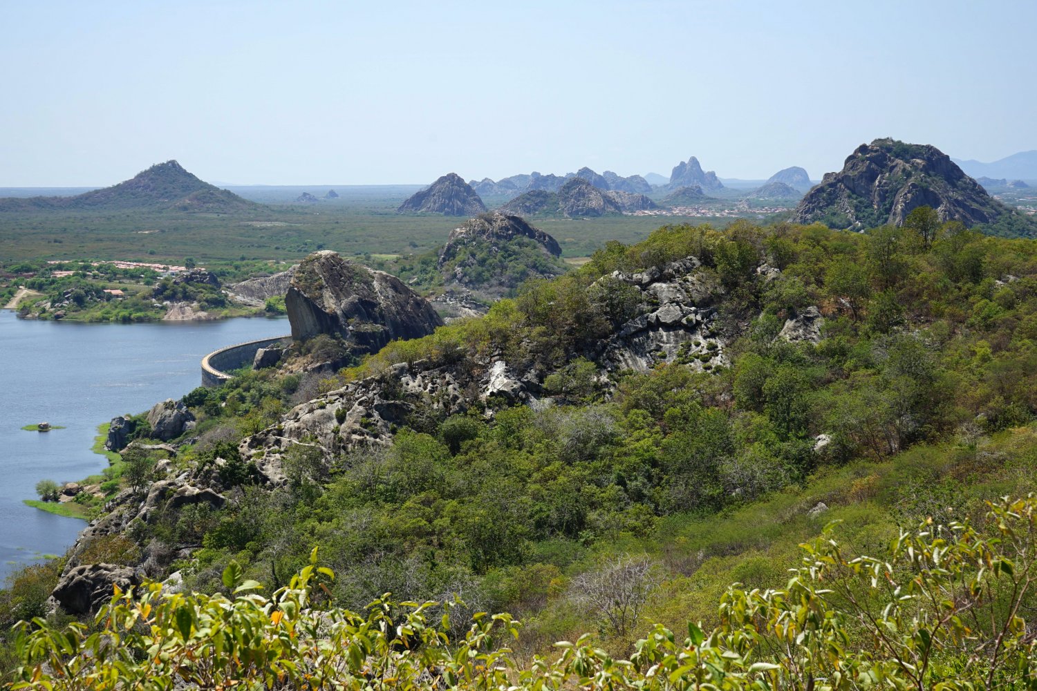 Ao longo da trilha que leva ao topo da Pedra da Galinha Choca, uma paisagem pontuada por monolitos (inselbergs) e o Açude do Cedro, um dos mais antigos do Brasil.