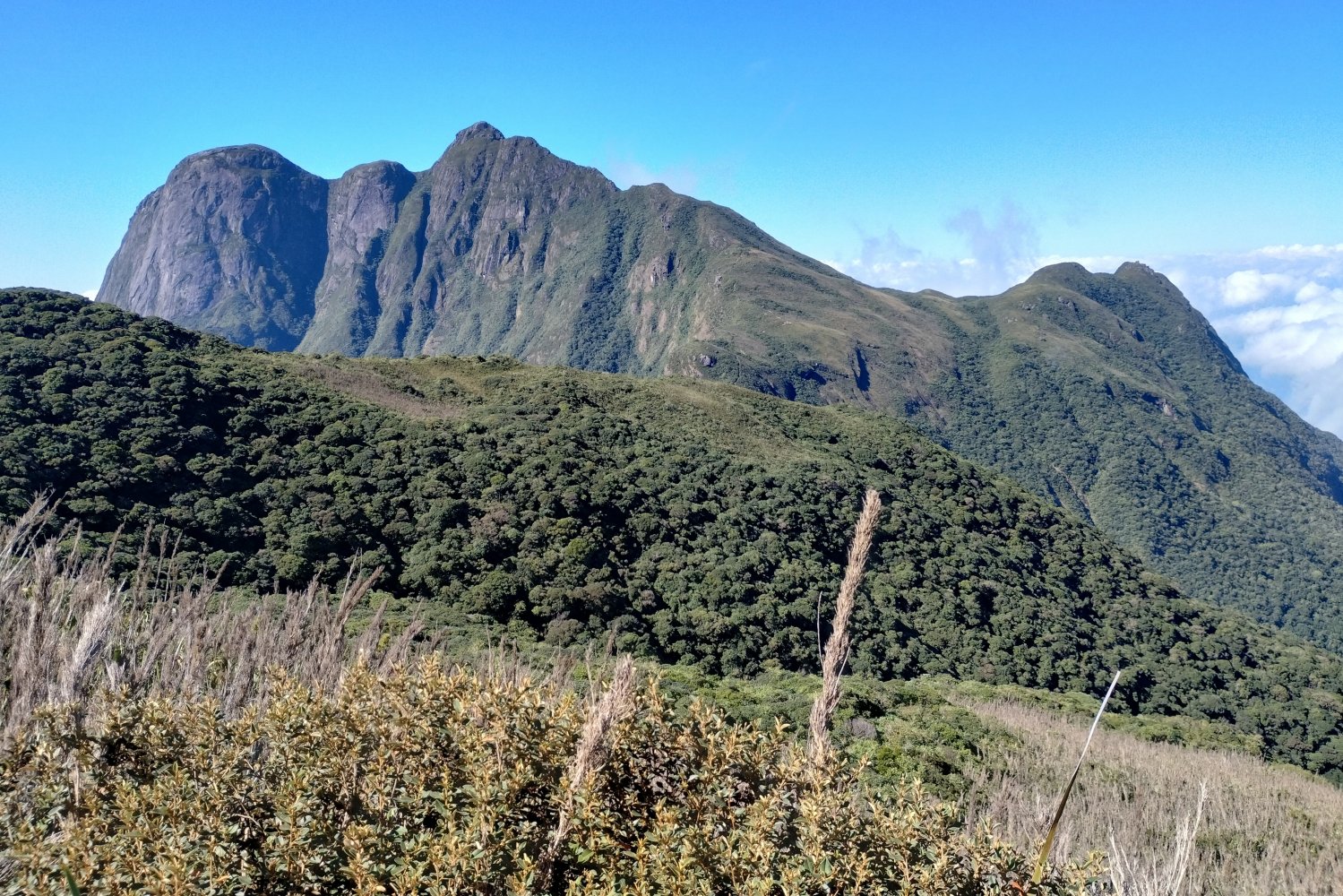 Montanhismo Trekking AcampamentoMaciço do pico Paraná. Da esquerda para a direita, os cumes do Ibitirati, União, Paraná e morro dos Camelos, mais à direita.