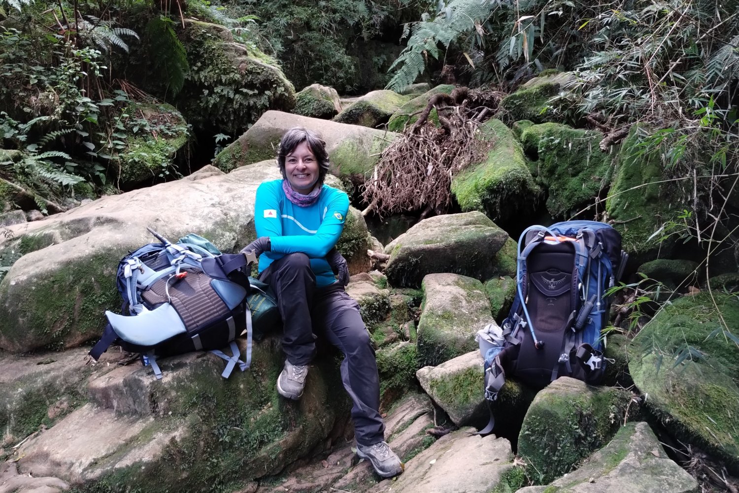 Uma breve parada em um ponto com água, próximo ao Acampamento 1.