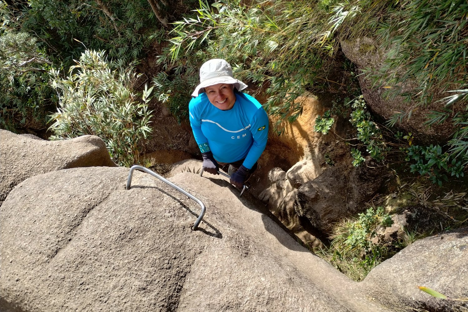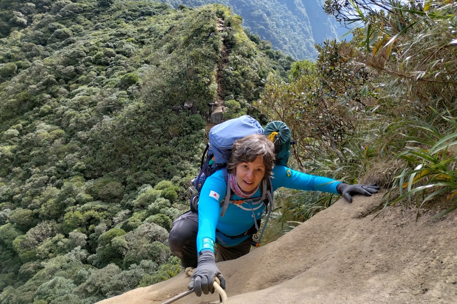 O “crux” da trilha, representado por uma via ferrata, em um trecho bastante íngreme e exposto.
